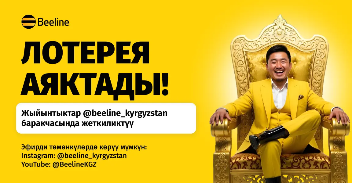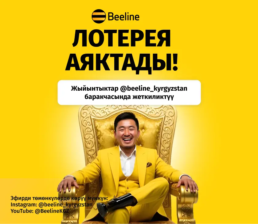 Лотереяга «Мой Beeline» же *1000#1# буйругу аркылуу кошулуңуз